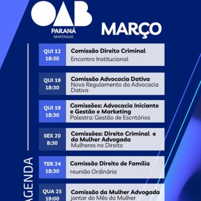 EVENTOS DO MÊS DE MARÇO